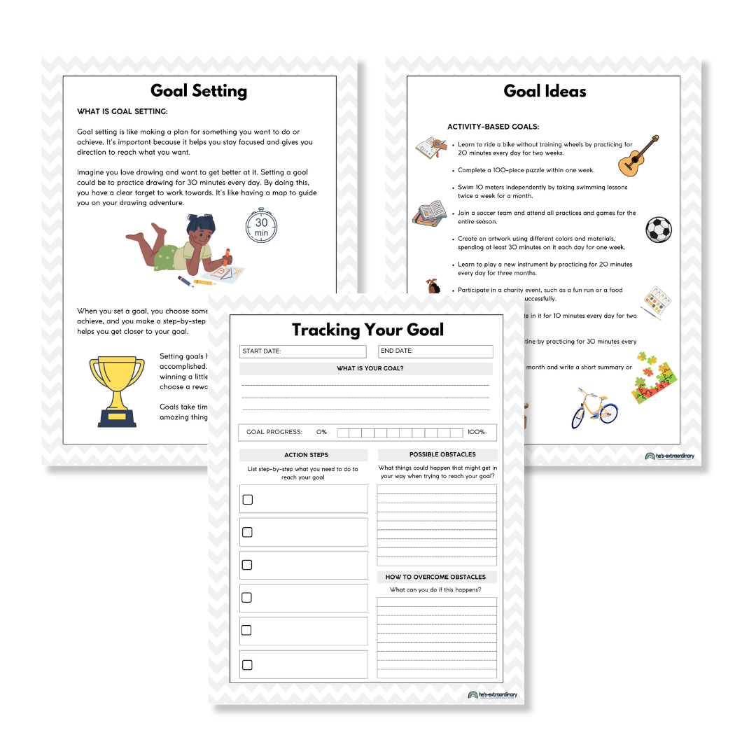 This 14-page Goal Setting Booklet guides kids through the process of setting and working toward their goals in a structured, engaging way. Designed for children ages 8 and up, this resource introduces goal-setting concepts in a way that is easy to understand while promoting independence and confidence.
