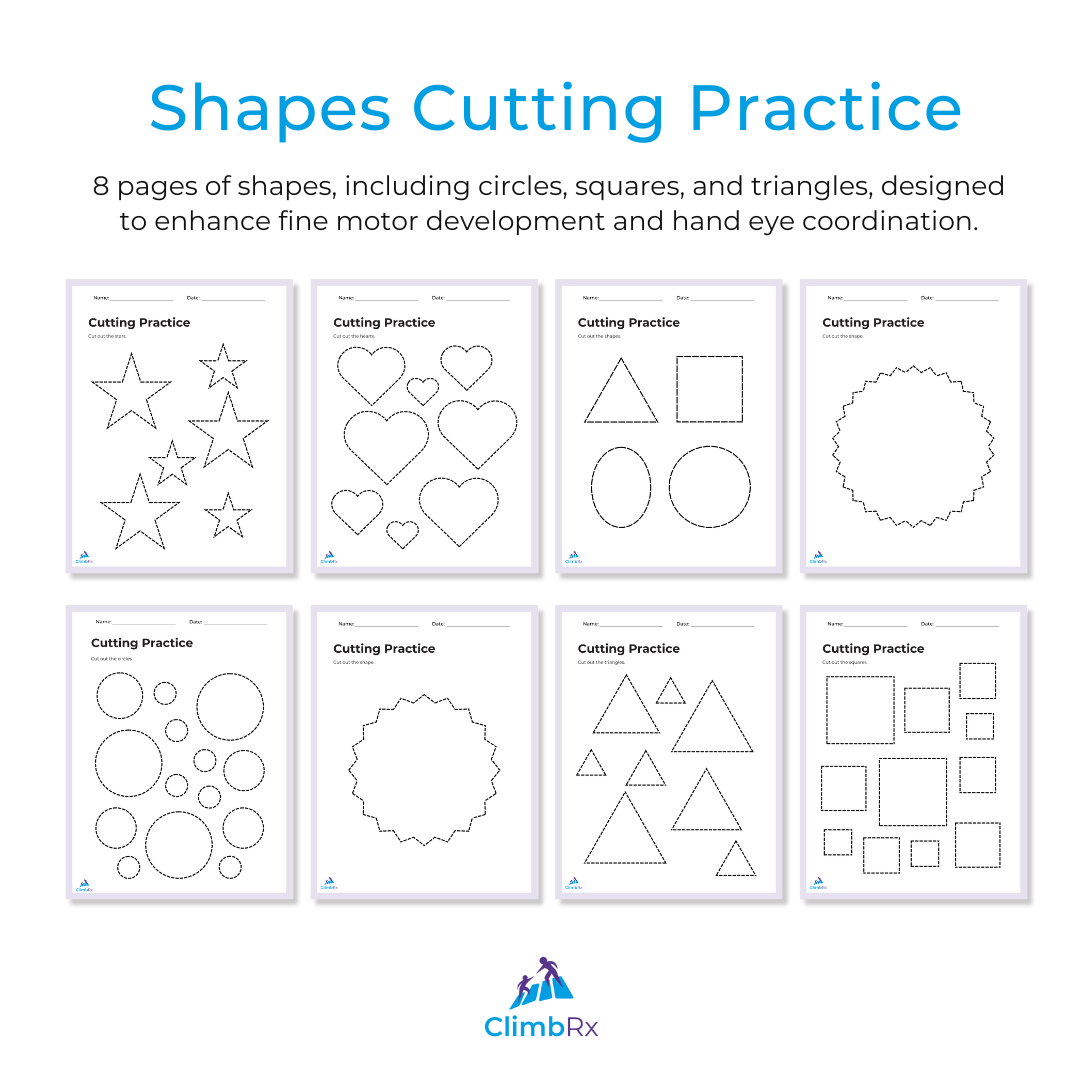 Enhance fine motor skills and hand-eye coordination with our Shape Cutting Practice Printables!